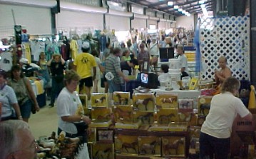 BREYERFEST 2001! What a blast! This years Breyerfest was our second to attend and much better than last years in our opinion. Here are some of the pictures we took this year. Other photos are located throughout the pages of my collection. Here is the Main Arena building at the Kentucky horse park. Inside is where almost all of the horse demonstrations and celebrity horse appearances take place. It is also the site of the vendor area.