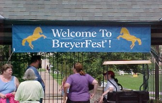Hundreds of horse related vendors from all over the country set out their wares. Don't come to Breyerfest short on cash! While at Breyerfest you can walk around the Kentucky Horse Park and view some of the celebrity horses such as Cigar and John Henry. And don't miss out on the daily ritual of putting the drafts out to pasture. These guys work hard every day at the Horse Park pulling the tour carts around for a horse drawn look at the park. When their day is done they are un-harnessed and introduced to everyone. A little is said about their breed and then they are wished goodnight and taken out to pasture.